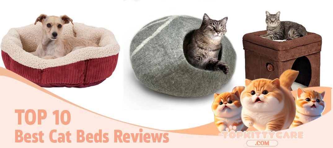 Our list includes the best cat beds researched and chosen by Top Kitty Care. We would love to hear about your cat’s preferences and experiences with these beds!